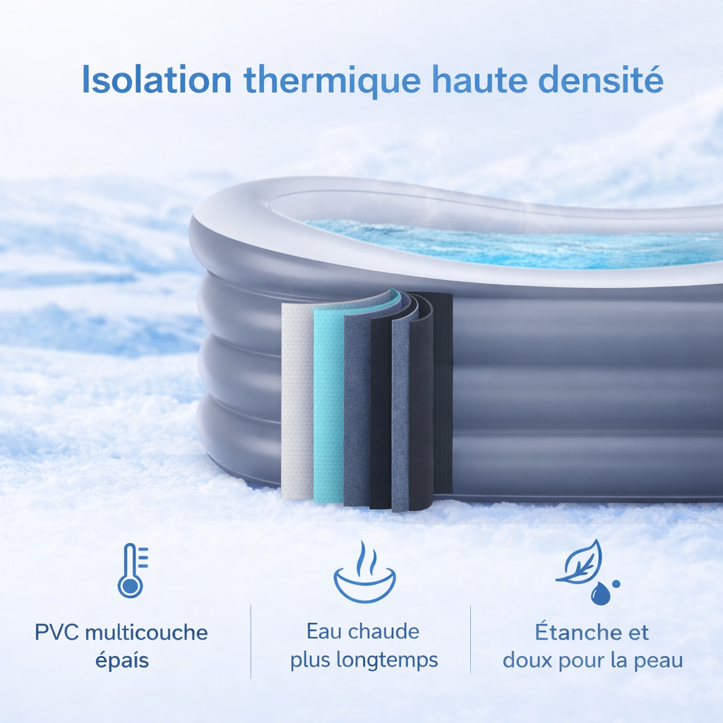 Grâce à son design ergonomique et à son isolation thermique renforcée, cette baignoire gonflable offre un véritable moment de bien-être à domicile ou en déplacement. Facile à installer et à ranger, elle garantit confort, relaxation et tranquillité, pour profiter d’un bain chaud à tout moment, sans contraintes.